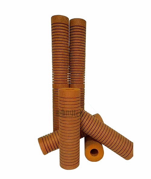 Le cartucce filtranti scanalate legate con resina serie GRB sono costituite principalmente da fibre e resine acriliche, con l'aggiunta di adesivi, agenti indurenti e stabilizzanti attraverso la sinterizzazione ad alta temperatura. I filtri in resina hanno una struttura dura che si restringe gradualmente che consente alle cartucce di resistere a viscosità e temperature estreme senza deformazioni o collassi. La qualità delle cartucce legate con resina Hongtek è equivalente alle cartucce filtranti Micro-Klean di 3M, sono sciolte all'esterno e strette all'interno, con micropori uniformi e elevata porosità, consentendo di intercettare particelle più grandi sulla superficie dei filtri, mentre le particelle più piccole vengono intercettate sullo strato interno, appartenenti alla filtrazione profonda, aumentando così la capacità di intercettazione e la durata. Adotta un processo di lavorazione per aggiungere scanalature sulla superficie delle cartucce filtranti legate con resina, espandendo così l'area di filtrazione effettiva e raggiungendo un'efficienza di filtrazione ultraelevata del 99,9%. Le cartucce legate con resina sono ampiamente utilizzate in molte industrie chimiche.
