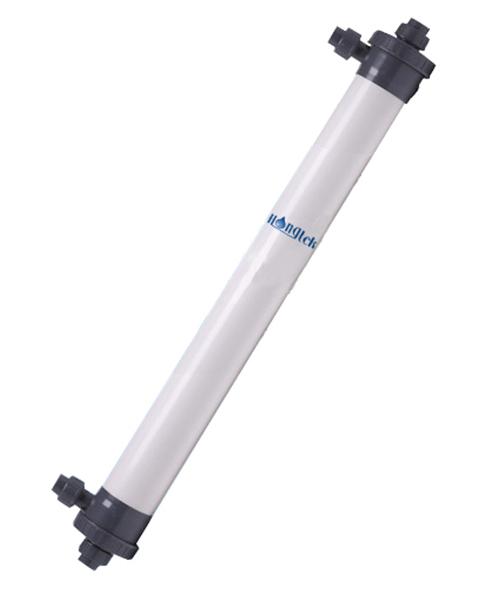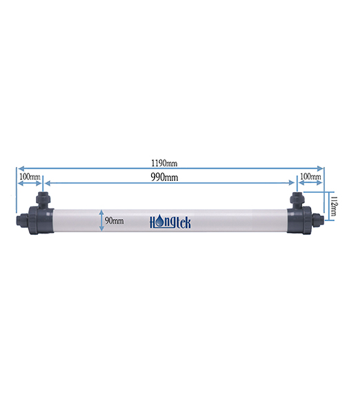 I moduli a membrana di ultrafiltrazione in PVC a fibra cava Hongtek serie UFP90 sono realizzati con membrana di ultrafiltrazione a fibra cava in PVC (cloruro di polivinile) modificato, che ha le caratteristiche di grande flusso, alta resistenza, resistenza agli acidi e agli alcali e lavaggio resistente ai farmaci. L'alloggiamento del modulo a membrana è realizzato in materiale UPVC ed è soggetto a una pressione superiore a 1 MPa.
