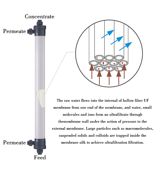 Principio di funzionamento della membrana di ultrafiltrazione a fibra cava in PVC